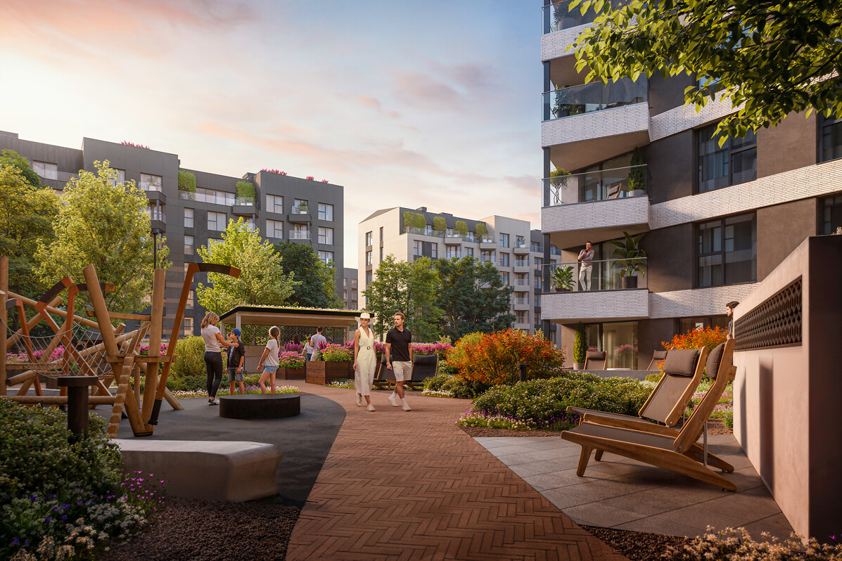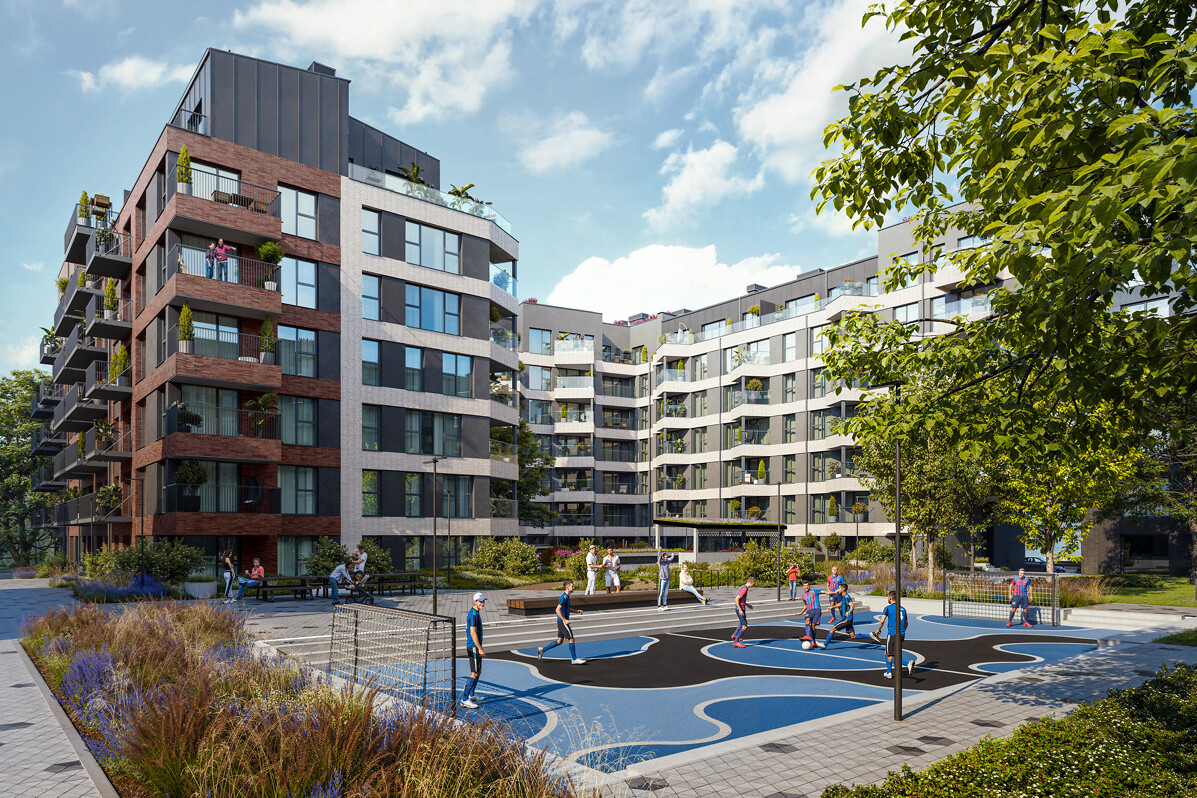 The development of the entire block is based on a unique green courtyard concept developed by “Labie Koki” specialists, ensuring that the project fits harmoniously into the urban environment and offers green solutions. This concept will give residents the opportunity to cultivate their small gardens right in front of their homes. A rainwater harvesting and utilisation system will also be set up to water the landscaped courtyards. The courtyard of the block will be walkable for all pedestrians.