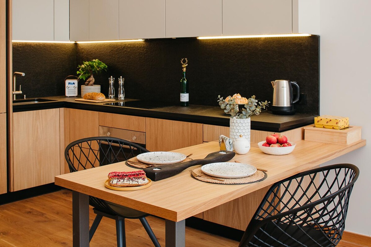 Projekts Promenāde piedāvā pilnībā aprīkotus dzīvokļus. Dzīvokļu apdarē izmantoti visaugstvērtīgākie dabīgie apdares materiāli, moderna tehnika un santehnika. Ir iespējams iegādāties virszemes autostāvvietu, iespējama arī stāvvietas īre. Katram dzīvoklim paredzēta mantu glabātuve.