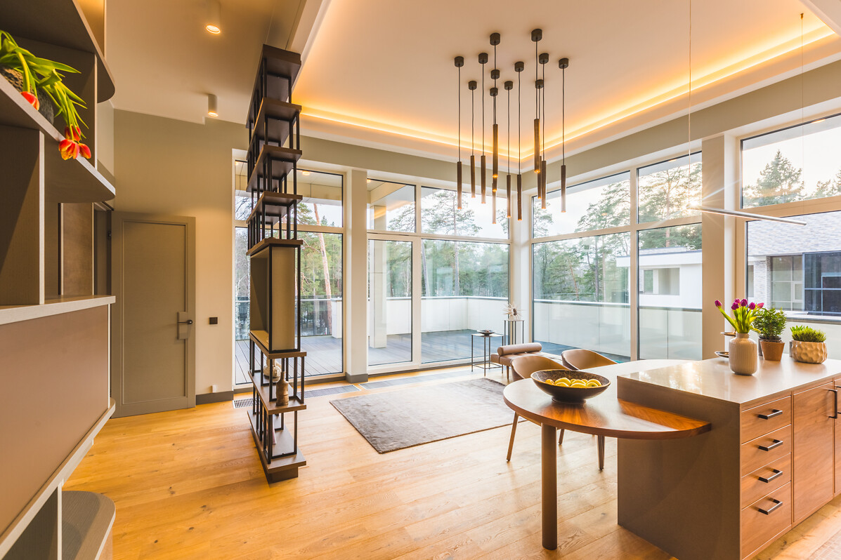 Ēku būvniecībā un apdarē izmantoti tikai augstvērtīgi materiāli (koks, stikls,