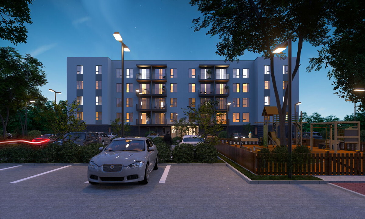 labiekārtota projektam pieguļošā teritorija, kas apkaimei liks ievilkt