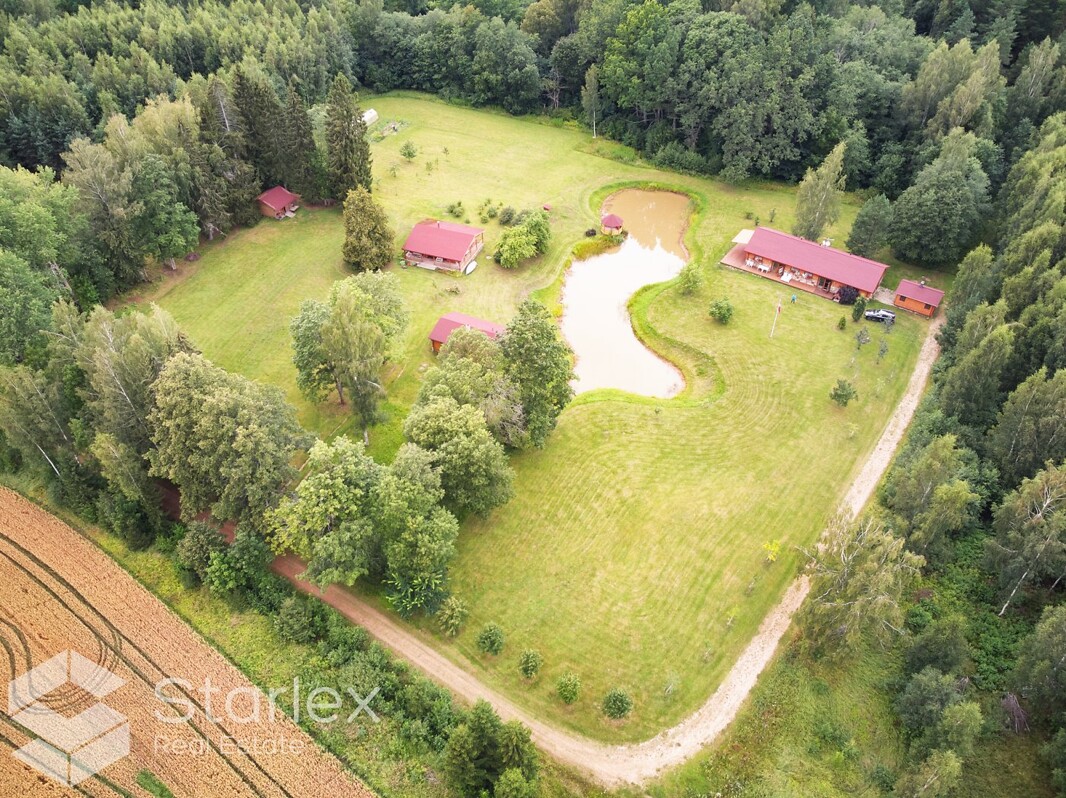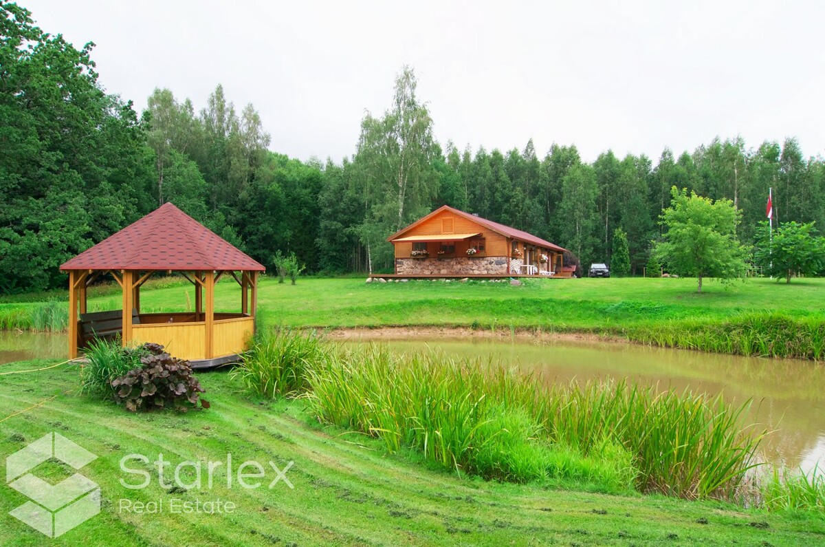 Īpašuma teritorijā atrodas arī šķūnis ar zāles pļāvēju, lapene iekoptā dīķa malā un siltumnīca.