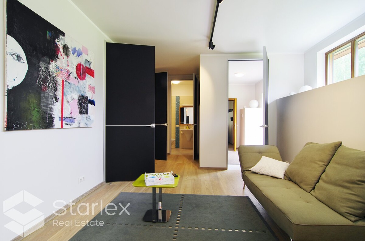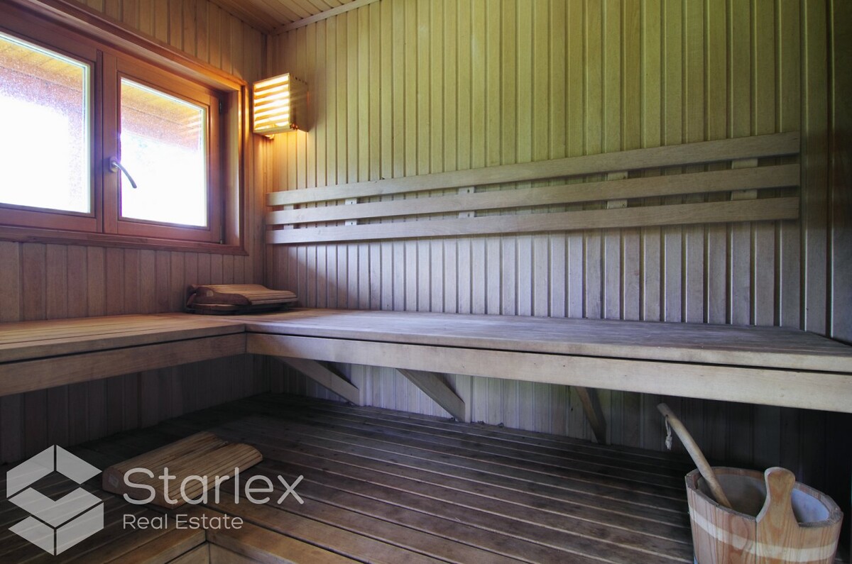 Dzīvojamā māja ar kopējo platību 193,8 m2 (iekštelpu platība 147 m2) ir celta no laukakmeņu mūra un koka. Mājā ir plaša viesitaba ar virtuvi, divas guļamistabas, divi sanmezgli un plaša istaba, kurā ir ierīkota kinozāle. Saimniekmājā pieejama arī virkne ekstru - ar pulti verami logu un durvju slēģi, kvalitatīva audio un video tehnika, kondicionieri, apsildāmās grīdas sanmezglos, augstu standartu virtuves iekārta utt. Blakus tai atrodas katlu māja ar granulu katlu un ūdens filtrēšanas iekārtu.