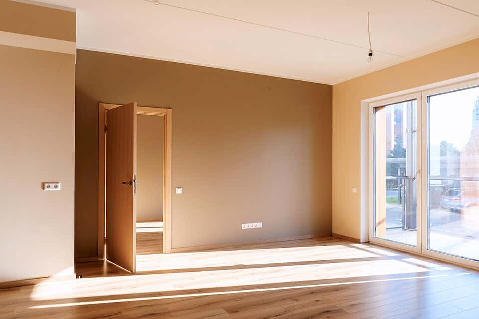 istabu dzīvokļi ar pilnu apdari, platībās no 46,5 līdz 69,8 m2.