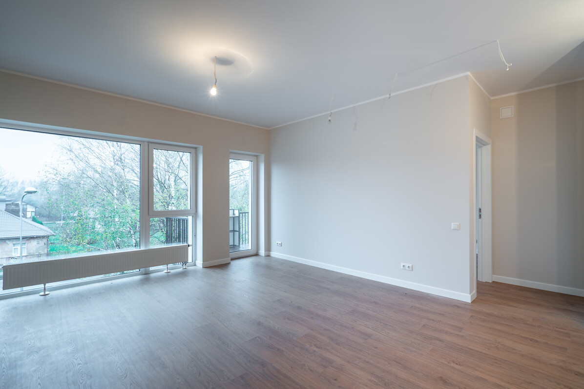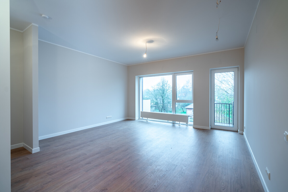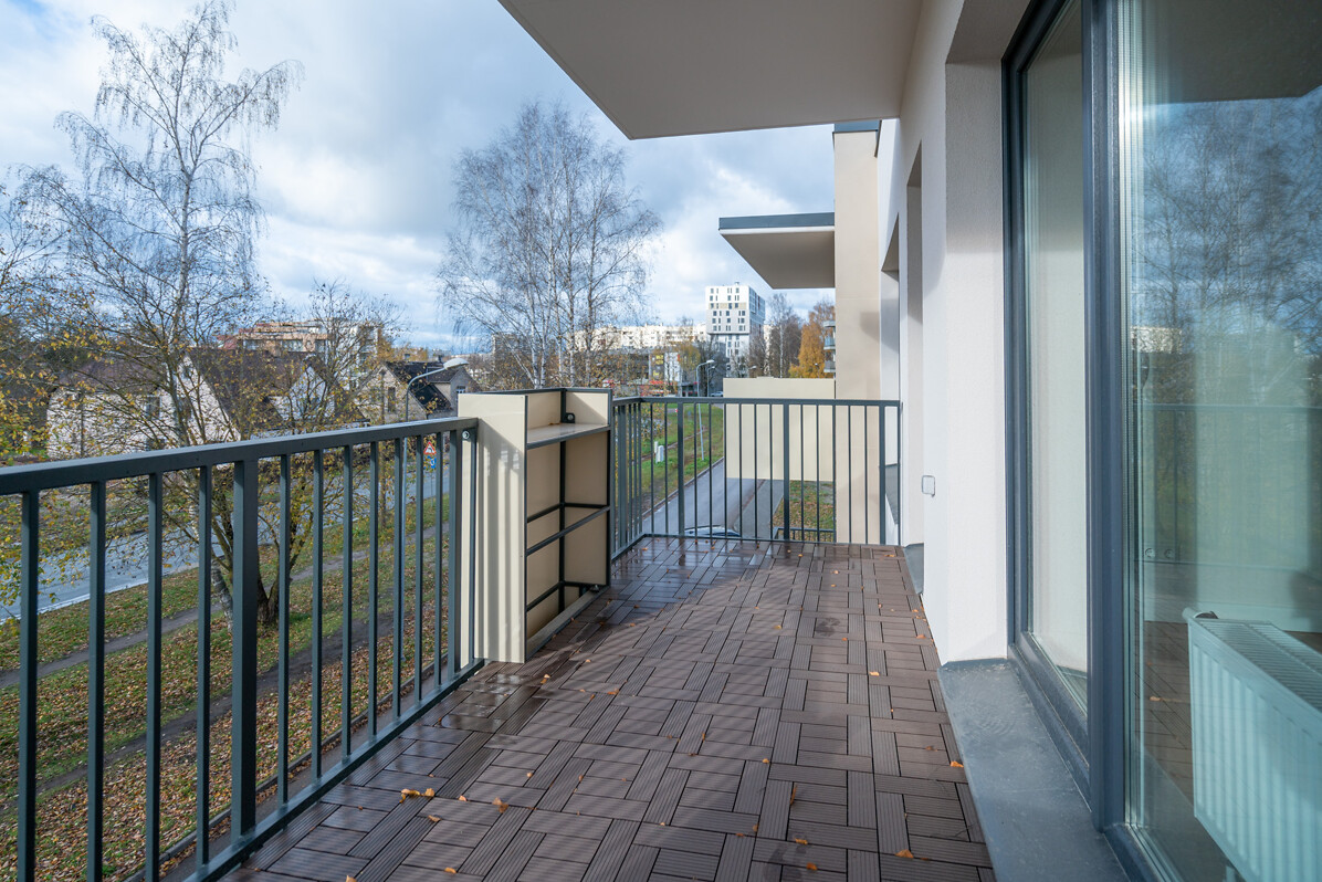 Pārdošanā atlikušajiem diviem pirmā stāva divistabu dzīvokļiem piekļaujas bruģēti patio un privāti zālieni.  Savukārt katram trešā stāva dzīvoklim ir privāti balkoni, uz kuriem var iziet gan no viesistabām, gan guļamistabām.