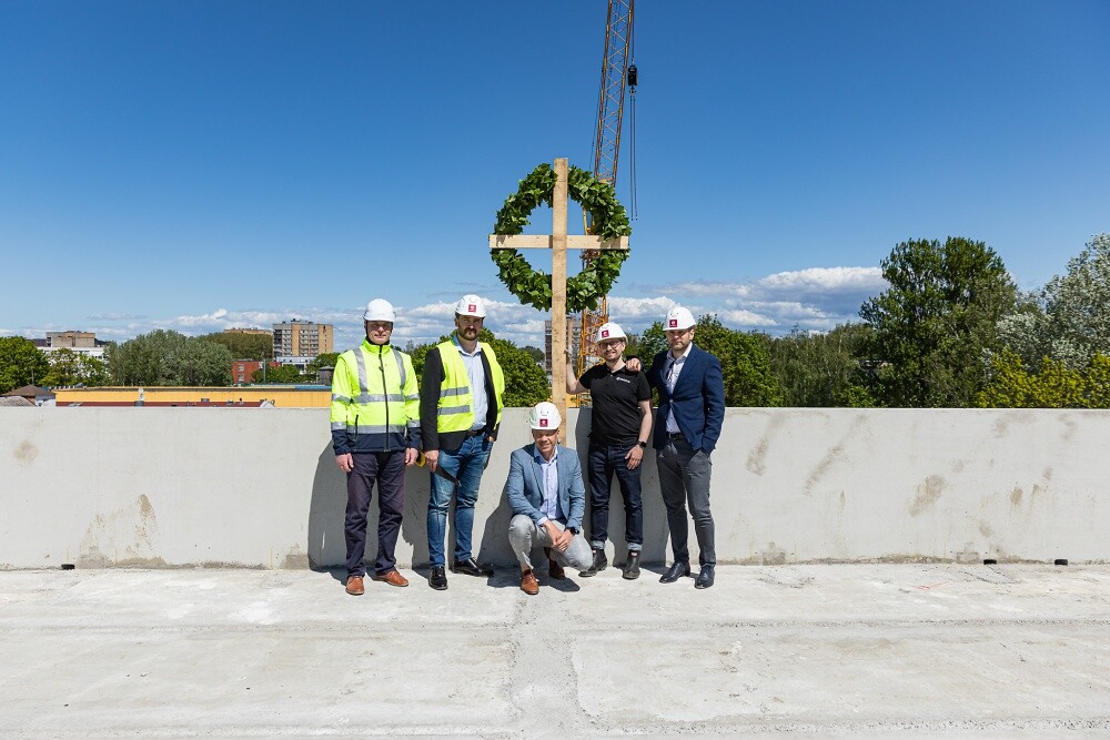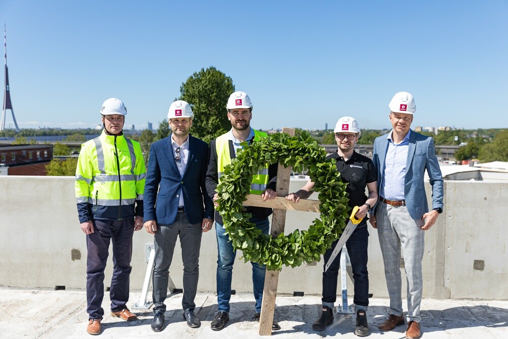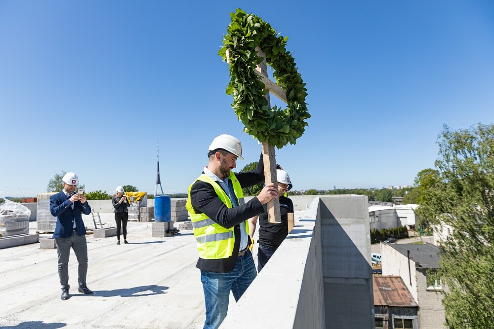 Š.g. 29. maijā nosvinēti dzīvojamā projekta Divi krasti pirmās ēkas spāru svētki.