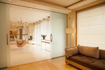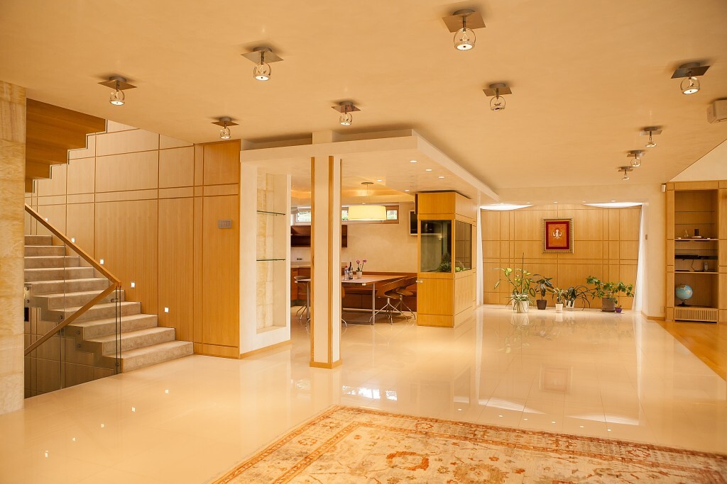 īpaši augstiem griestiem un ar akvāriju nodalīta