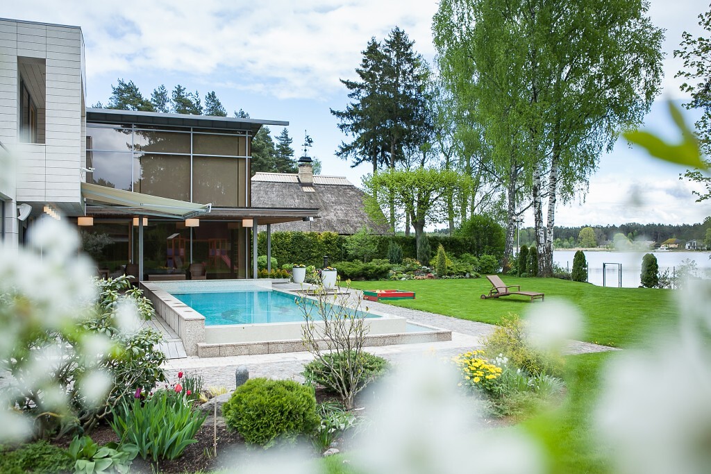 harmoniska vide un arhitektūra, kas iedvesmo. Daba un ūdens sniedz