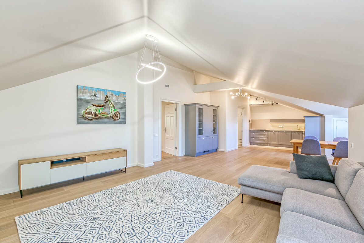 “Ķīpsalas Horizontos“ ir pieejami četri trīs istabu dzīvokļi platībās no 99 m2 līdz 137 m2. Šie dzīvokļi ir piemēroti dažādām gaumēm – ar balkonu, divlīmeņu (divstāvu), mansarda tipa vai klasiska tipa dzīvokļi. Ir pieejamas noliktavas un virszemes stāvvieta.