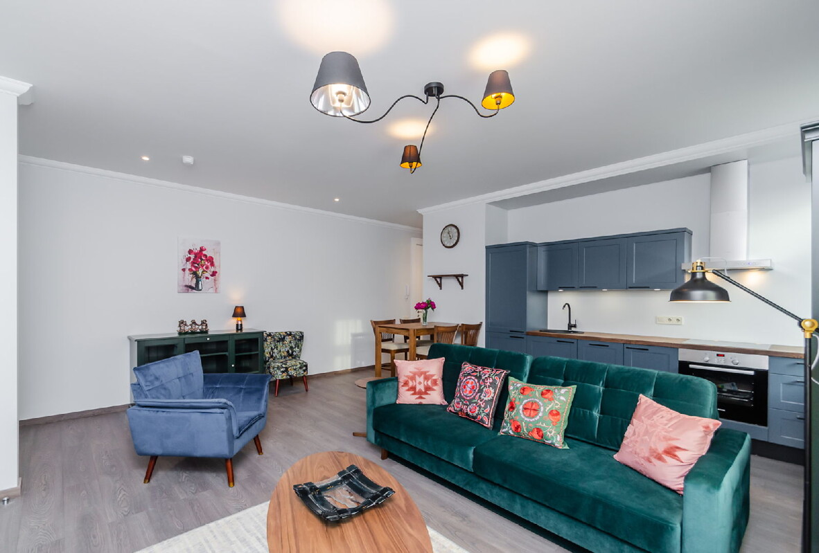 Projektā tiek piedāvāti gan kompakti studio tipa dzīvokļi, gan plašāki divu un trīs istabu dzīvokļi. Dzīvokļi tiek piedāvāti ar pilnu apdari, iebūvētu virtuvi un sadzīves tehniku, kā arī iebūvētiem sienas skapjiem. Gandrīz visi no dzīvokļiem ir pilnībā mēbelēti un katram dzīvoklim ir individuāli siltuma skaitītaji, ēkā ir uzstādīts jauns, moderns lifts.