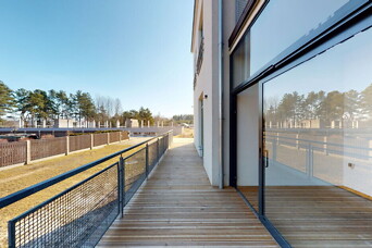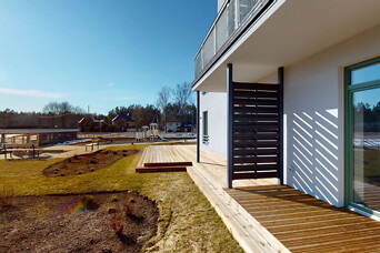 10. dzīvoklis – trīsistabu dzīvoklis ar skatu uz privātu dārzu jeb zaļo zonu, ko labiekārtojis profesionāls dārznieks. Dzīvoklī ir viesistaba ar virtuves zonu, divas atsevišķas guļamistabas, sanitārais mezgls un terase 8,3 kvadrātmetru platībā. Dzīvokļa kopējā platība ir 73,2 kvadrātmetri. Pārdošanas cena: 151 940 EUR. Plašāka informācija par dzīvokli šeit!