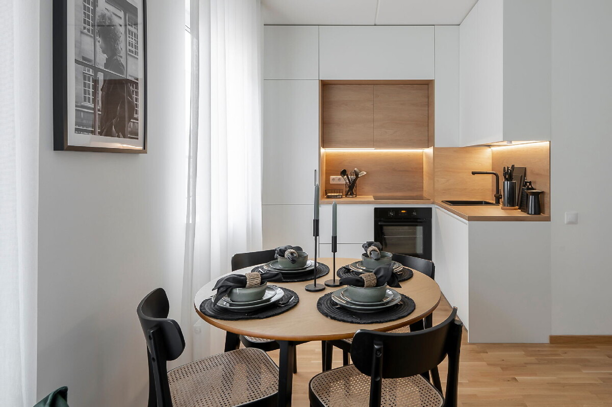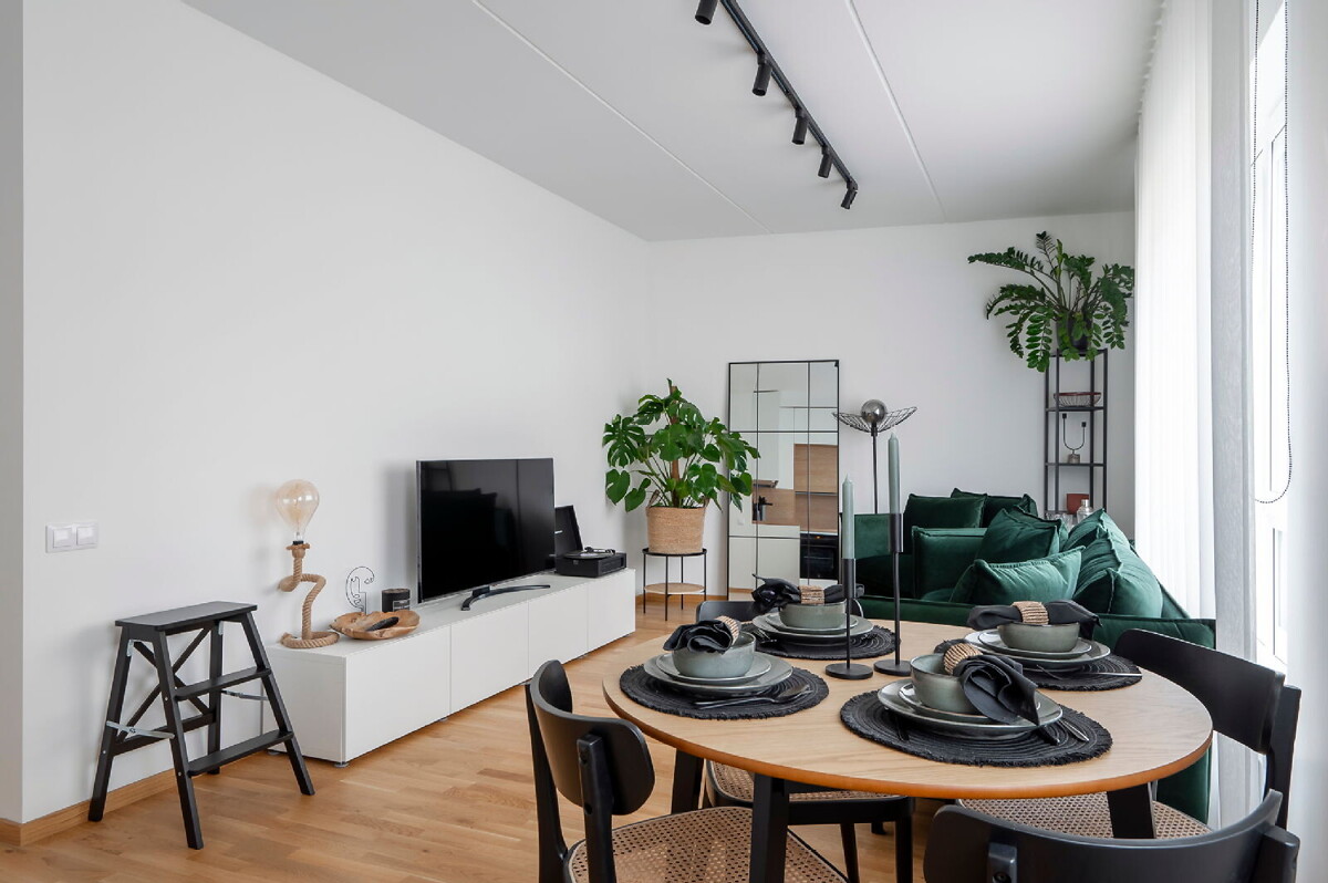 Dzīvokļiem ir mūsdienu prasībām un dzīvesveidam piemēroti plānojumi un 2,70 m augsti griesti, energoefektīvi risinājumi. Uz apdares risinājumiem nav taupīts – dzīvokļos ir parketa grīdas, kvalitatīvi logi un Villeroy&Boch santehnika. Katram dzīvoklim ir balkons, savukārt ģimenes ar bērniem novērtēs privāto rotaļu laukumu plašajā iekšpagalmā.