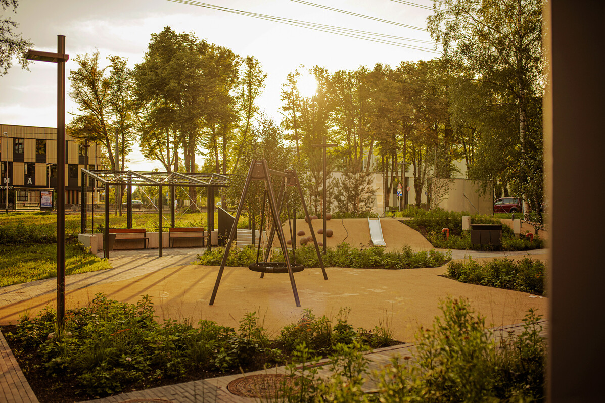 Iedzīvotāju ērtībām izveidota koplietošanas velosipēdu novietne, kā arī noliktavu telpas ēkas pirmajā un otrajā stāvā. Katrā namā ir divi lifti. Daļa autostāvvietu ir izvietotas ēkas 1. stāvā un daļa - pagalmā, kur pieejamas arī stāvvietas ar elektroauto uzlādes iespēju.