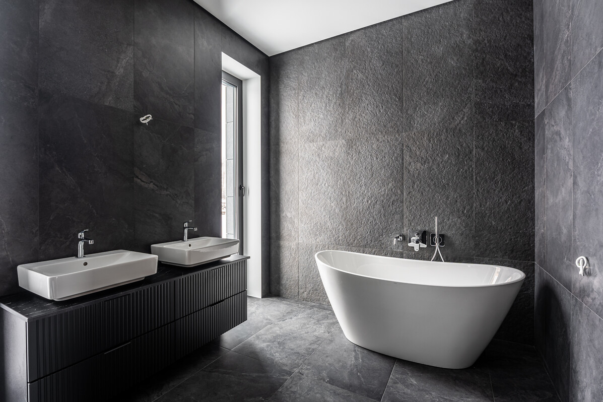 Katrā "GREY STONE VILLĀ" jau ir dizaineru izstrādāta augstas kvalitātes pilna iekšējā apdare, tostarp izmantotas itāļu akmens masas flīzes, "Boen" ozola dēļu siltās grīdas, visaugstākās kvalitātes "Geberit" santehnika, "Axor" ūdens krāni un "PAA" akmens masas vannas.