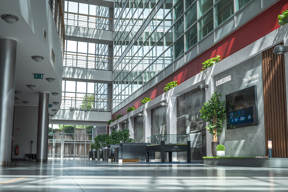 Biroju komplekss veidots kā divdaļīga septiņu stāvu ēka, un tajā ir četri lifti, kas nodrošina ātru piekļuvi vēlamajam stāvam. Pateicoties stiklotajam ātrijam, telpu piepilda dabiska gaisma, kas spēj radīt iedvesmojošu atmosfēru produktivitātei un iedvesmai. Svarīgi, ka ēkā tiek nodrošināta 24 h dzīvā apsardze, consierge pakalpojumi un profesionāla ēkas apsaimniekošana. Ēkas pirmajā stāvā atrodas pusdienu restorāns "Noon Box", piedāvājot gardas maltītes un rosīgu atmosfēru kontaktu veidošanai, kā arī darbinieku enerģijas un labsajūtas nodrošināšanai. Turklāt, apkaime ir labi aprīkota ar vairākiem citiem pusdienu restorāniem, dodot darbiniekiem daudzveidīgas izvēles iespējas.