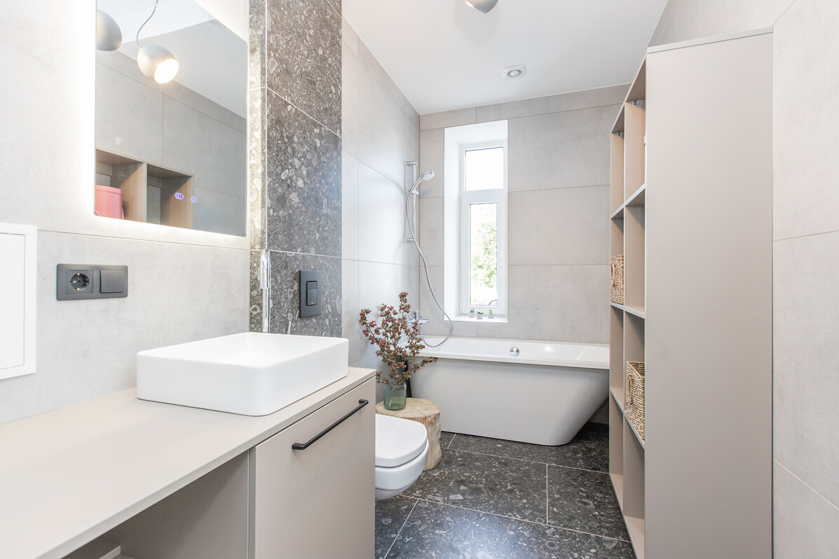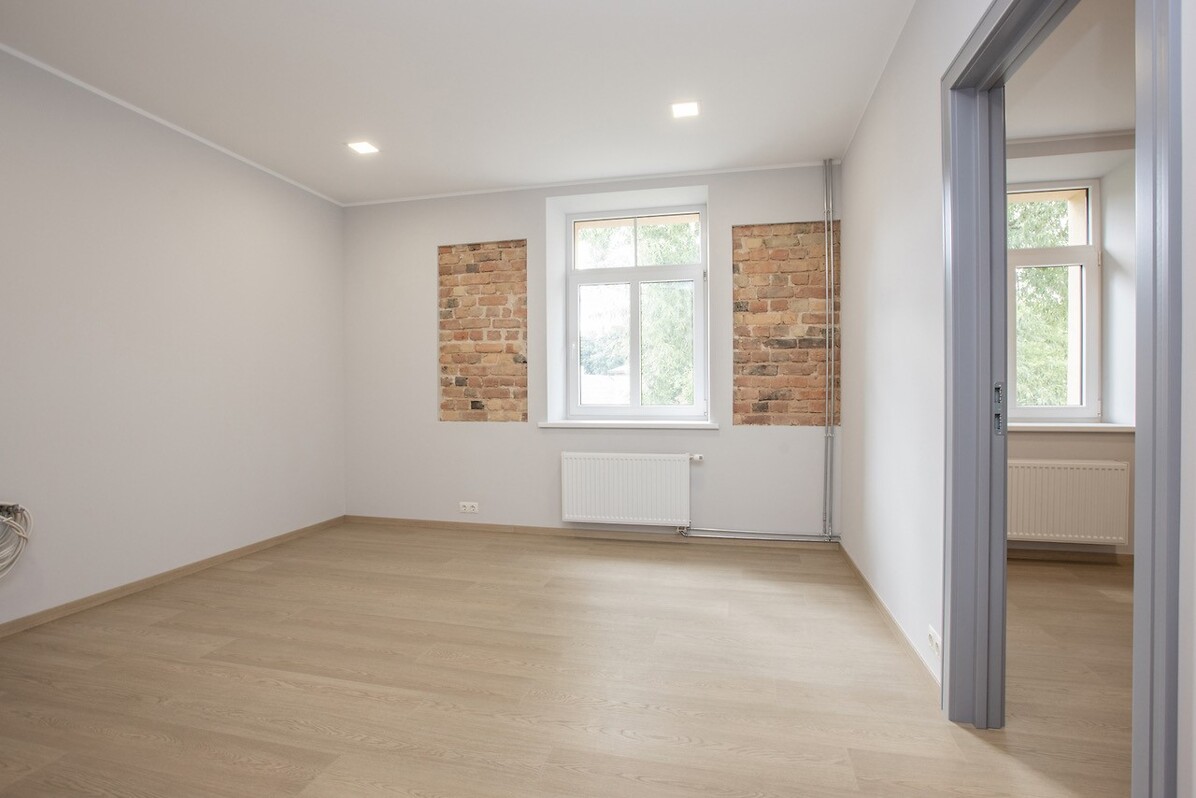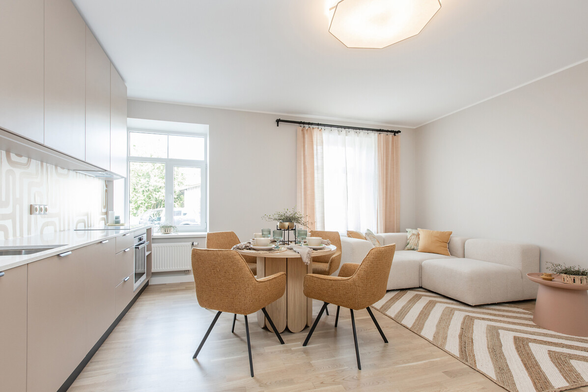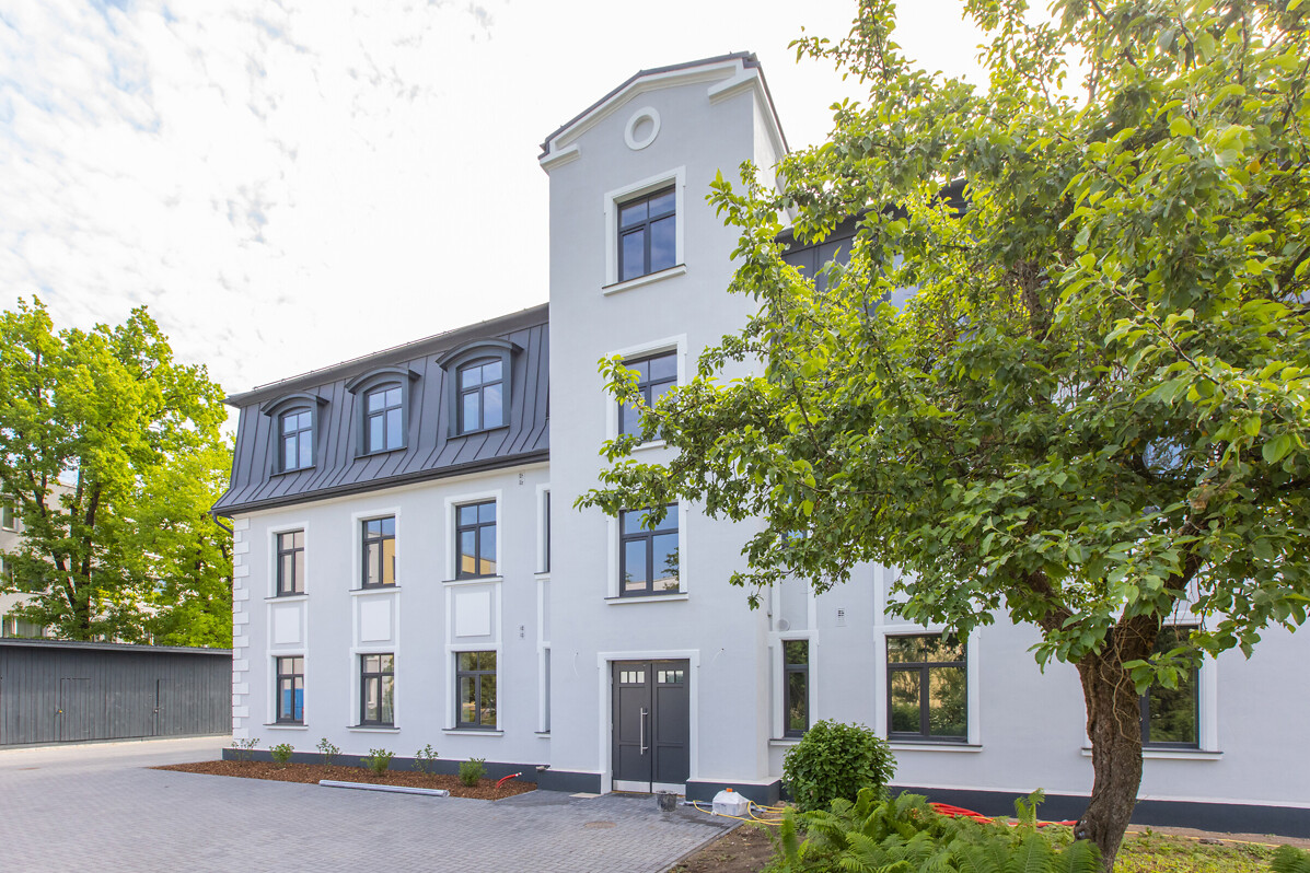 Dzīvokļi ir pieejami ar iebūvētu kvalitatīvu virtuvi un pilnu apdari - iebūvēta santehnika, apmestas un krāsotas sienas, grīdās ieklāts augstvērtīgs lamināts un flīzes. Mājai nomainīts jumts, siltināta un restaurēta fasāde ar apgaismojumu, mainīti visi stāvvadi un elektrība, uzstādīts moderns, autonoms granulu apkures katls, izbūvēts pagrabs ar noliktavu telpām. Labiekārtots pagalms, kur izbūvētas auto stāvvietas (iegādei pieejamas 5 autostāvvietas un mantu glabātuves).