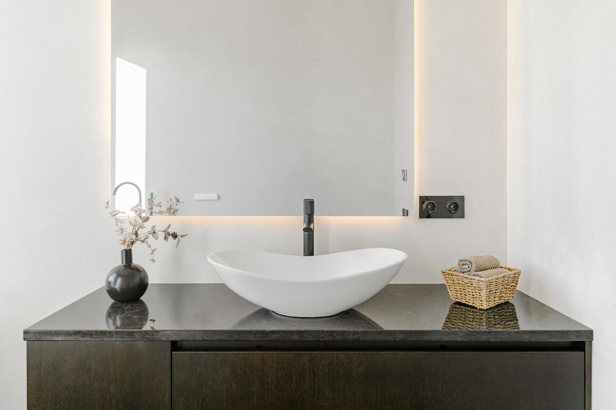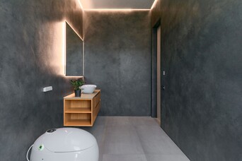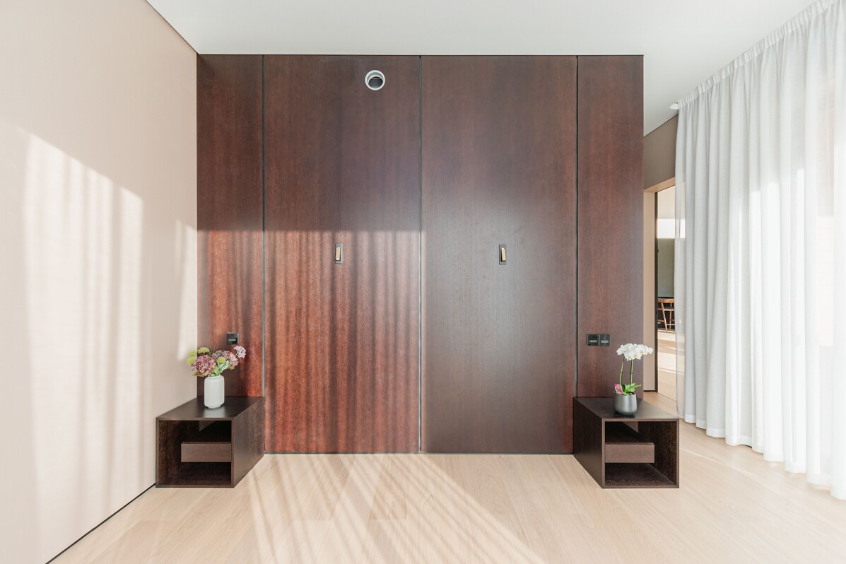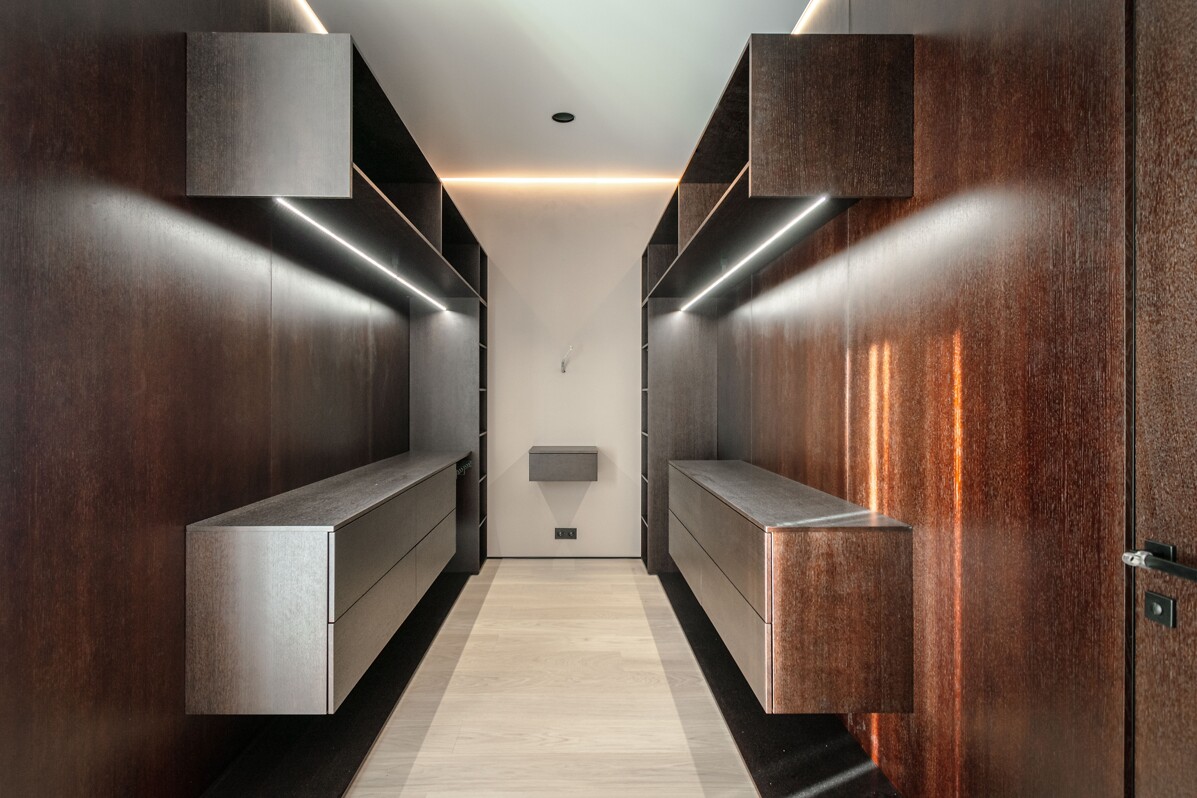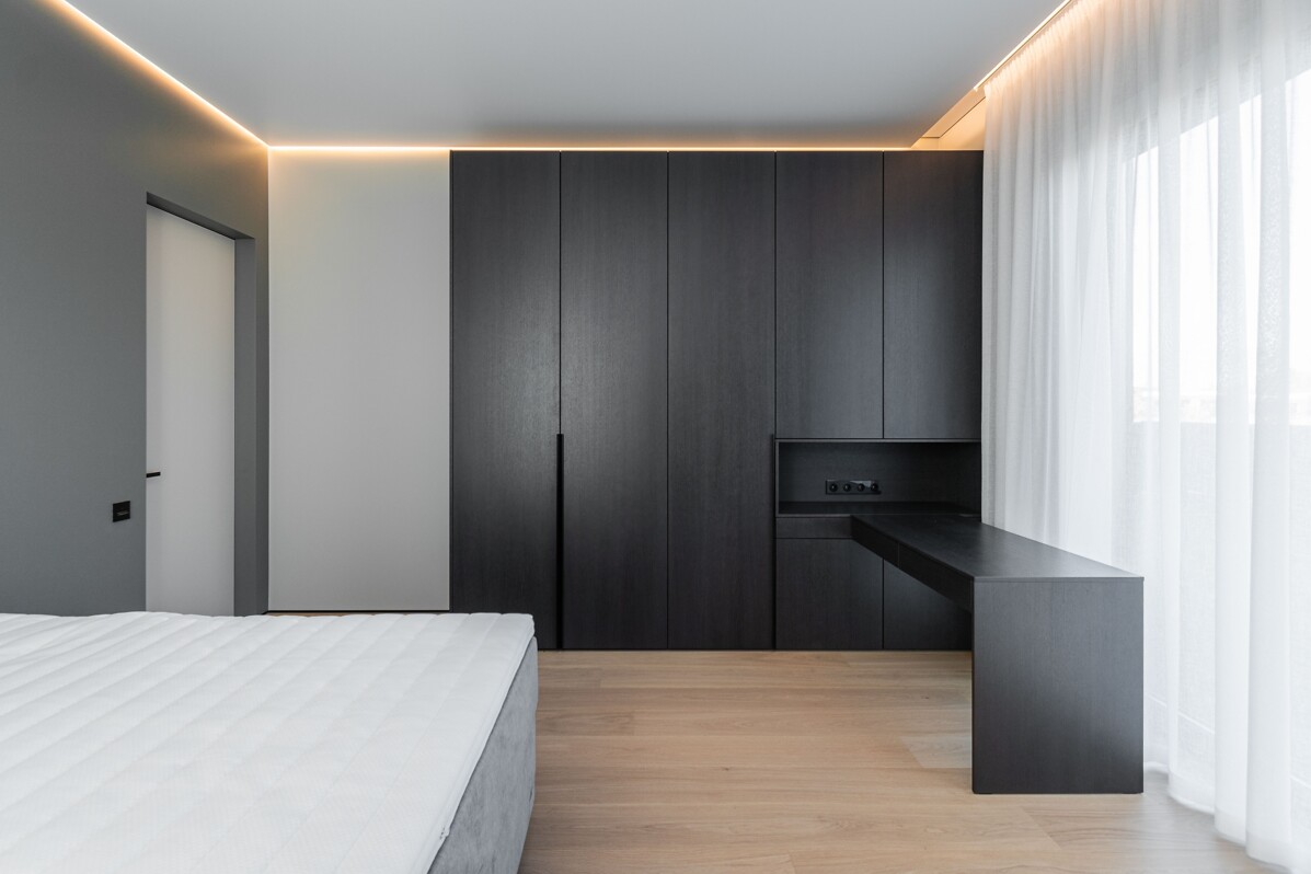 Māju fasādes dizains veidots divos lakoniskos toņos - grafīta tonī, ko papildina mājīgs koks ar nakts fasāžu apgaismojumu, radot mājīgu un vienlaikus izsmalcinātu sajūtu.