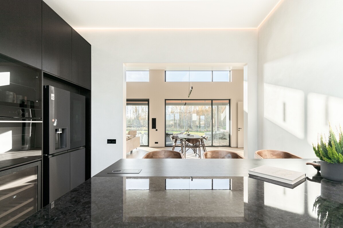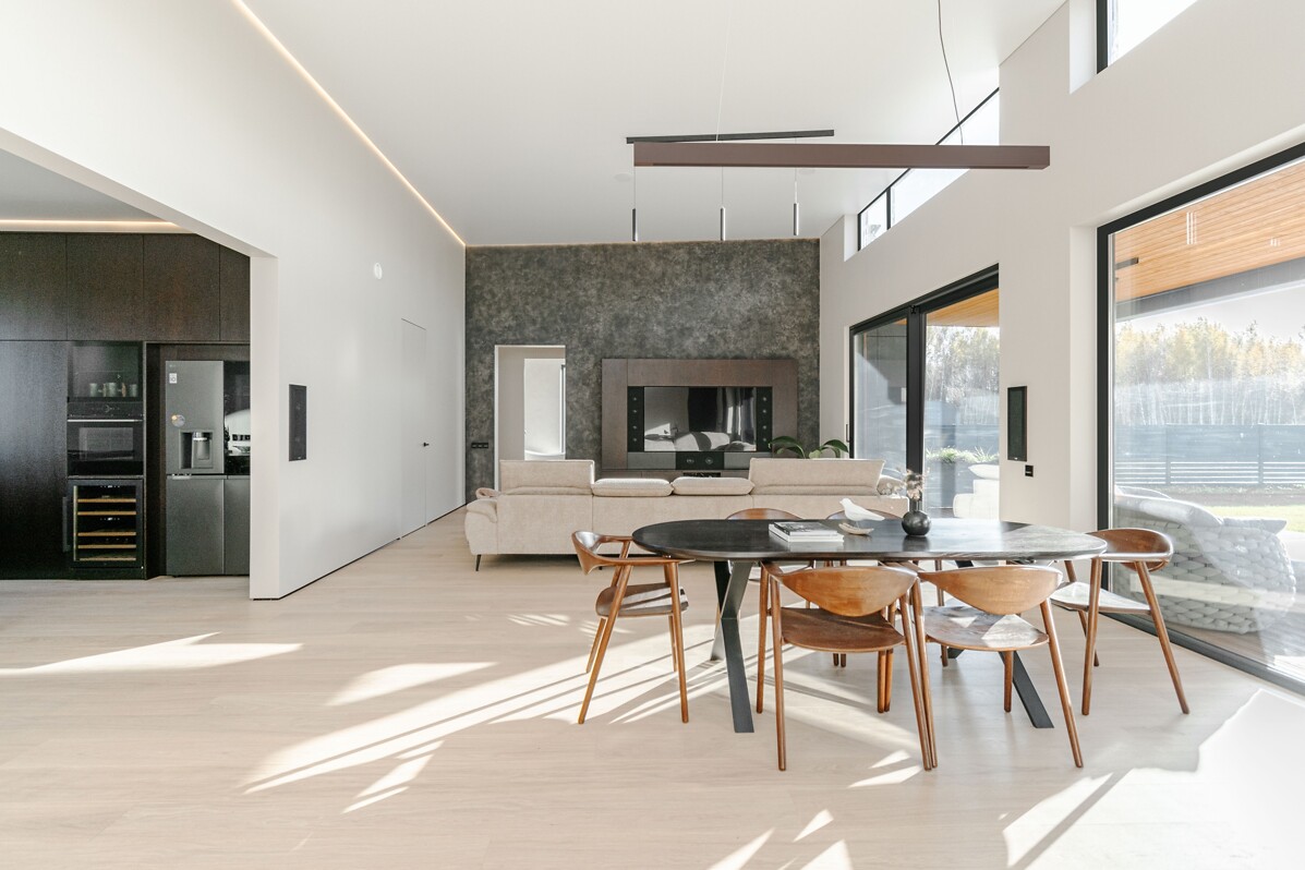 “Mežavēju” privātmājas jaunajam īpašniekam piedāvā net zero-energy priekšrocības, jo šajās mājās ir pārdomāti viedās mājas tehnoloģiskie un energoefektivitātes risinājumi. Mājām unikālu raksturu, eleganci un plašumu dod ēkas dzīvojamā zonā, kurā ir 4 metru augsti griesti un plaši vitrīnas logi ar izeju uz terasi, kas piedāvā brīnišķīgu skatu uz labiekārtotu dārzu, ko apvij gleznaina bērzu birzs un tuvumā plūstošā Mārupes upīte.