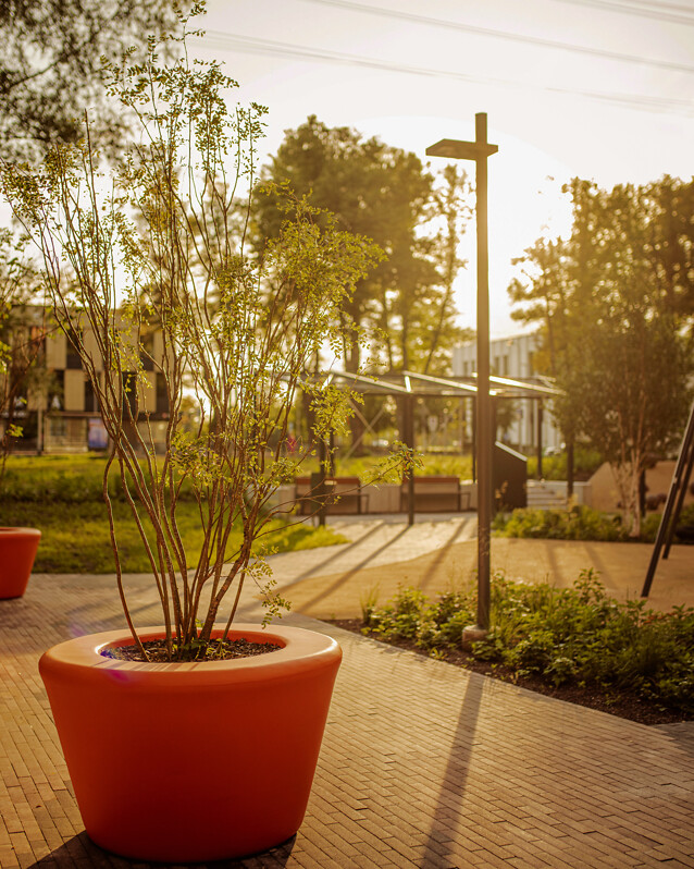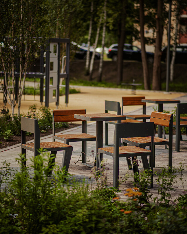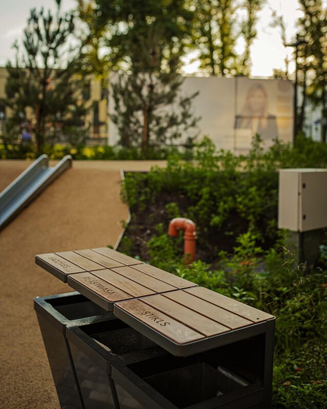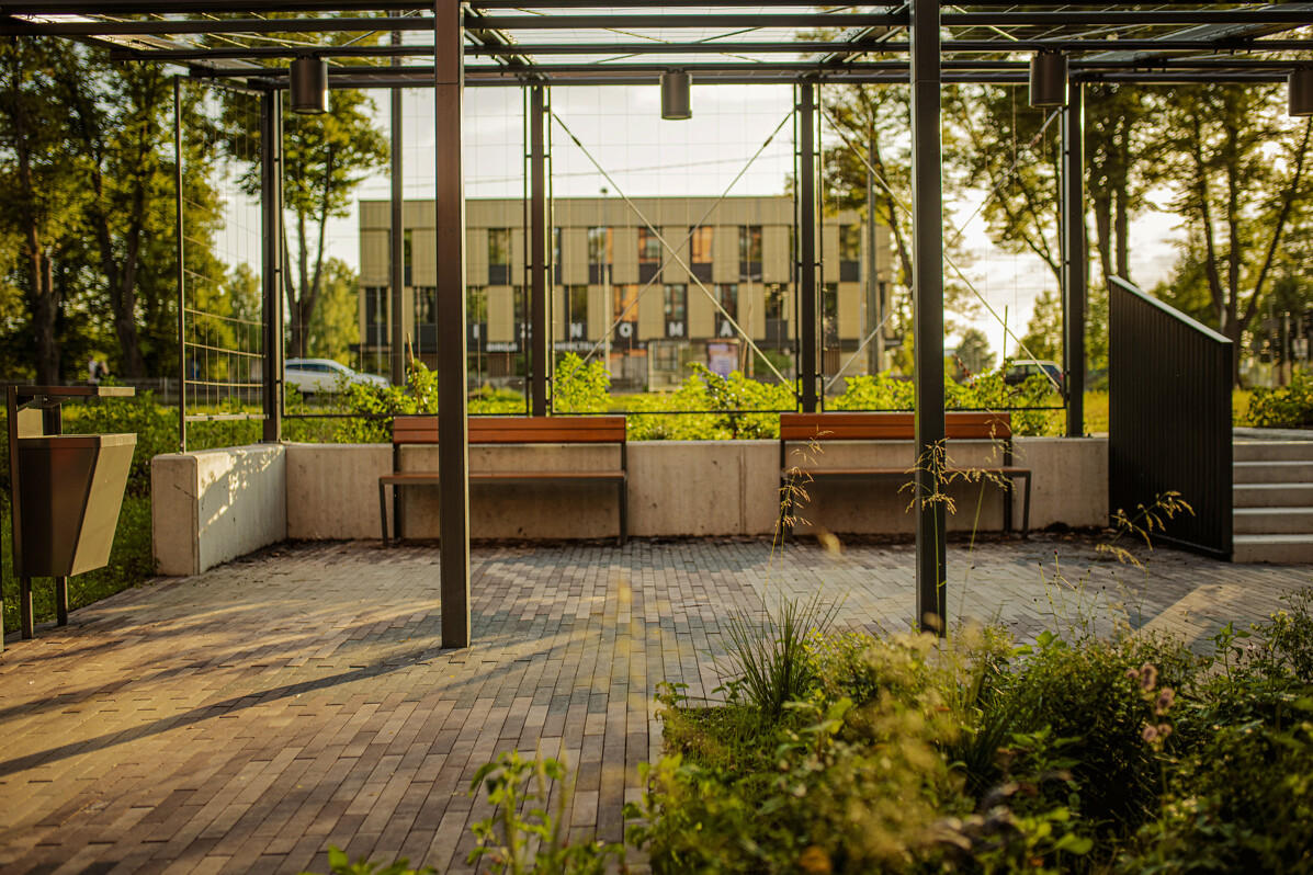 Patīkama un estētiska apkārtējā vide – projektam ir rūpīgi apzaļumota un labiekārtota teritorija ar atpūtas zonu ar soliem un galdiem, kas lieliski noderēs laika pavadīšanai kopā ar ģimeni, draugiem vai kaimiņiem. Izbūvētas velo novietnes un noliktavas telpas, kā arī pieejami āra trenažieri un mūsdienīgs rotaļu laukums bērniem.