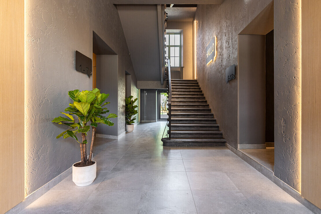 HALLO LOFT renovācijas procesā pilnībā atjaunota ēkas fasāde, restaurēti sākotnējie logi un izgatavotas precīzas kopijas jauniem logiem. Veikta visu būtisko komunikāciju - stāvvadu, elektrības un citu inženiertīklu nomaiņa. Ierīkota jauna centrālapkures sistēma ar individuāliem skaitītājiem, kā arī uzstādīta moderna rekuperācijas sistēma, kas nodrošina efektīvu gaisa apmaiņu, uzlabo gaisa kvalitāti un palīdz saglabāt energoefektivitāti. Dzīvokļu ierīkošanai tika izvēlētas mūsdienīgas un funkcionālas mēbeles no videi draudzīgā ražotāja “Kave Home”, virtuves ir aprīkotas ar “Bosch” augstas kvalitātes sadzīves tehniku, vannas istabās tika izmantota “Grohe” un “Duravit” santehnika.