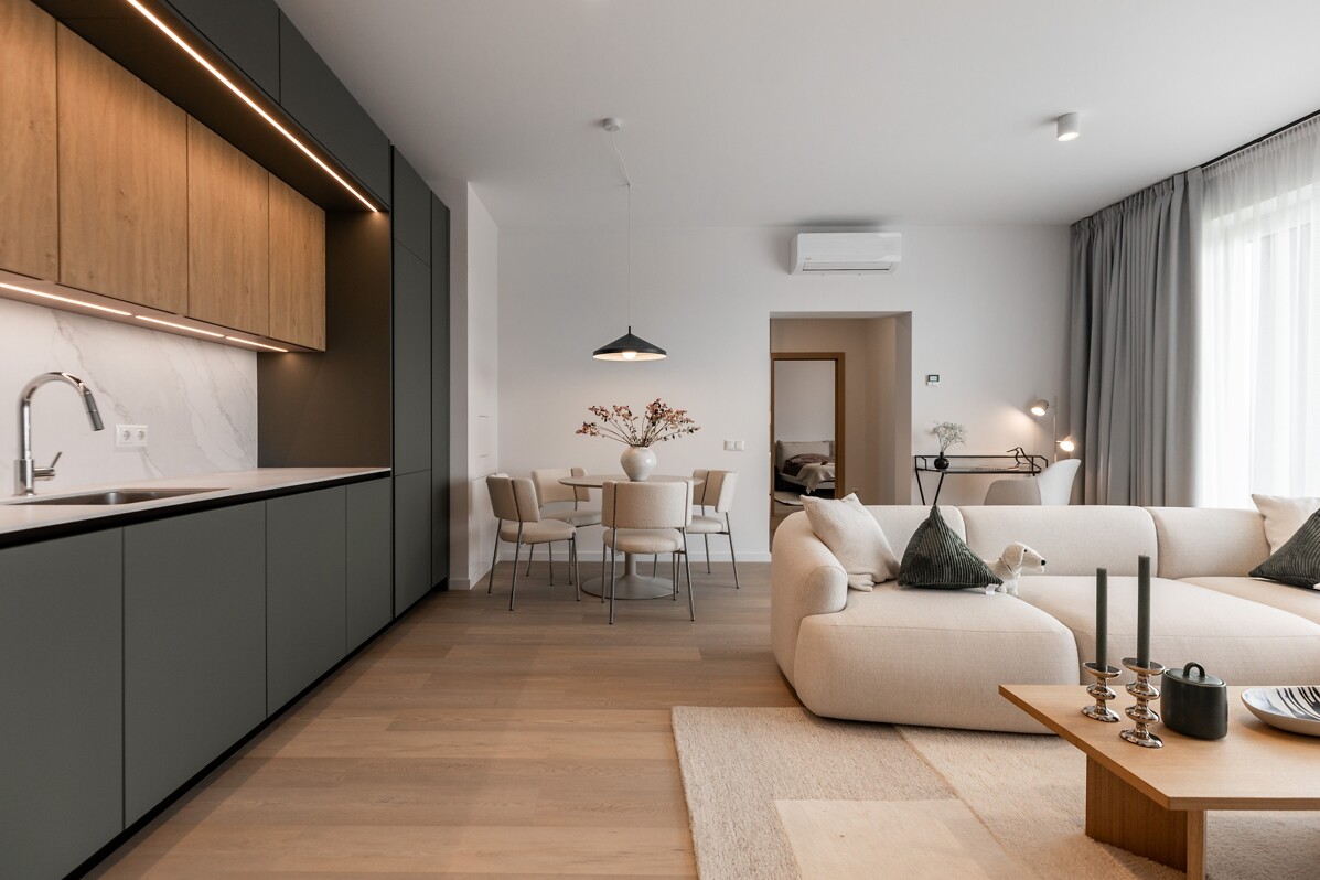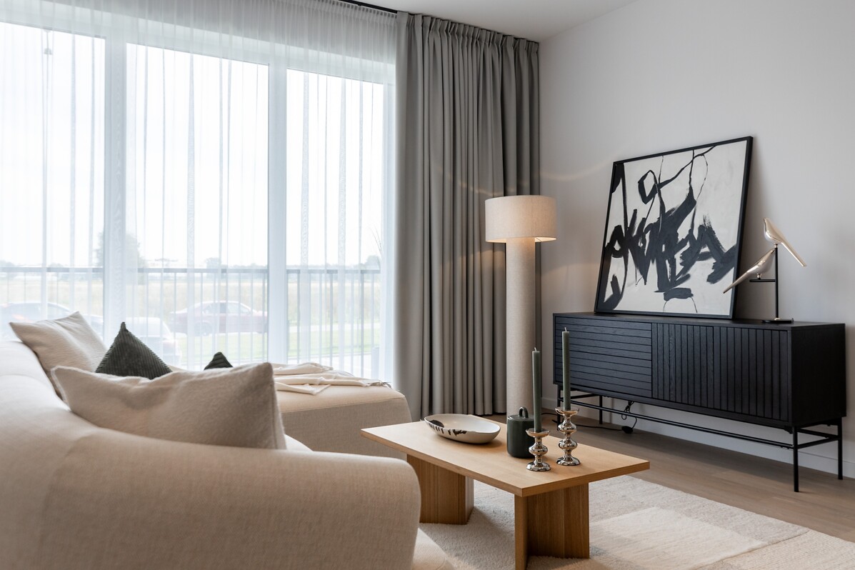 Visos dzīvokļos izvietots 8 kvadrātmetrus plašs balkons, kā arī pieejama autostāvvieta un privāta noliktavas telpa pagrabstāvā. Pircējiem iespējams izvēlēties starp diviem grīdas toņiem un trim vannas istabu risinājumiem. Komfortu ikdienā nodrošina rekuperācijas sistēma un grīdas apkure, kas sniedz vienmērīgu siltumu visā mājoklī, kā arī piešķir interjeram tīru atmosfēru, jo telpās nav radiatoru.