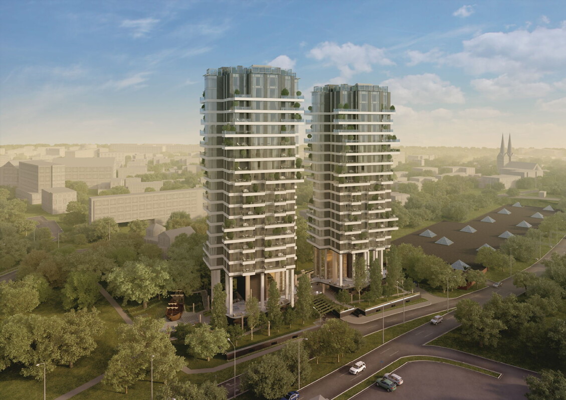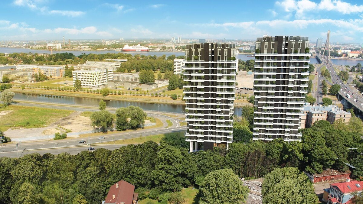 Авторами проекта зданий является SIA Arhis arhitekti под руководством архитектора Андриса Кронбергса, строительные работы производит SIA VELVE. Отделку фасада здания изготовят из керамического материала, которому присущи свойства самоочищения. В проекте предусмотрены нетипично высокие потолки: в квартирах до 10 этажа высота потолков составит 2,91 метра, с 11 этажа – 3,11 метра, а в гостиных квартир на верхних этажах высота потолков будет достигать 6,75 метров.