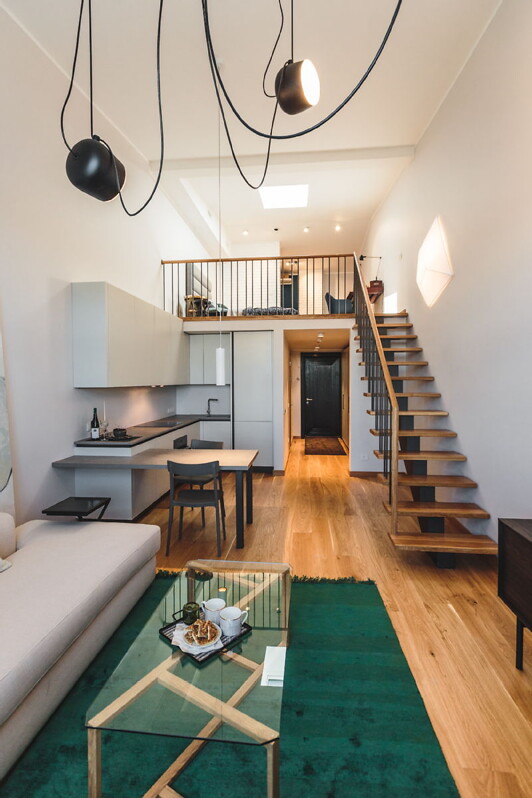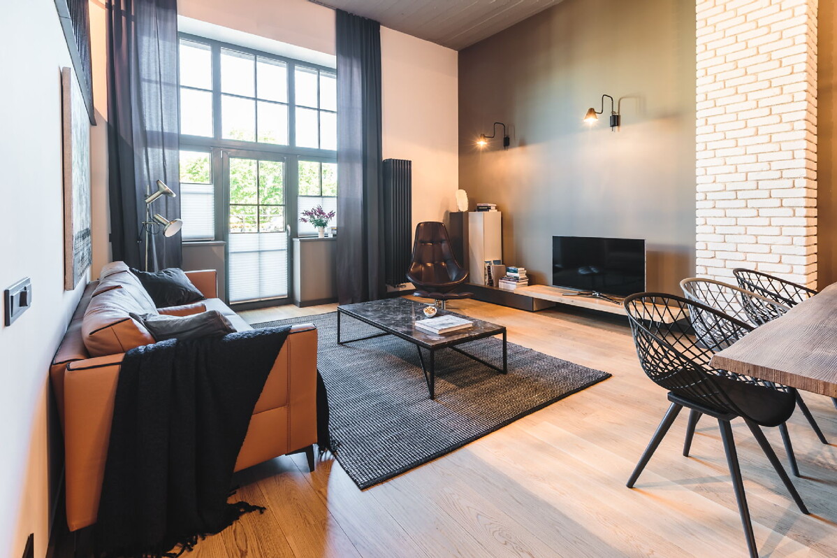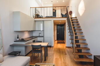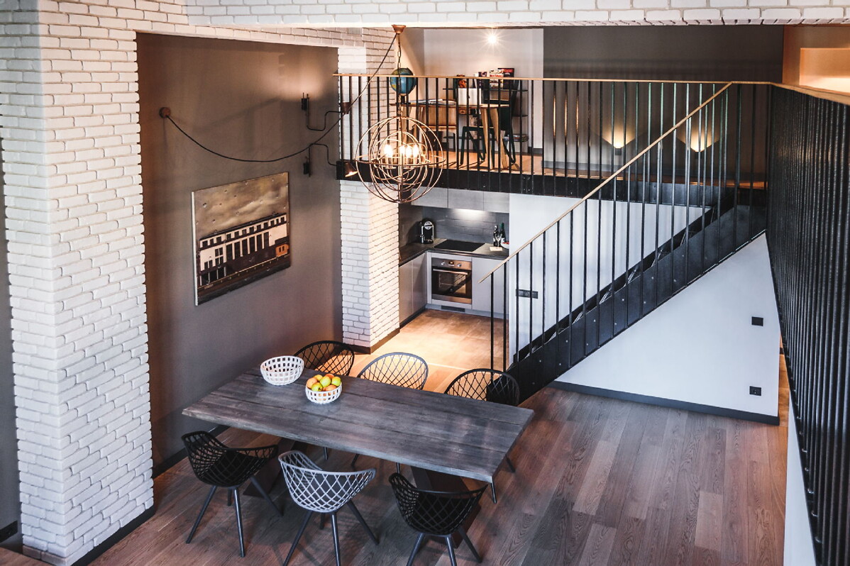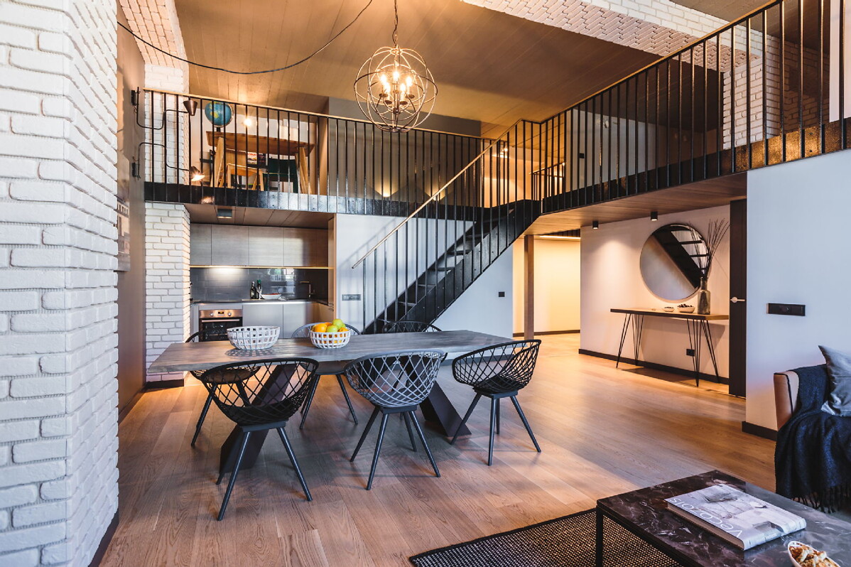 В интерьере всех двухуровневых квартир нового поколения доминирует приглушенная цветовая гамма, придающая своеобразную и оригинальную элегантность. Функционально продуманная планировка позволяет рационально использовать все доступное пространство. Необычные архитектурные элементы квартиры – высокие потолки, широкие окна, дубовая лестница на второй уровень, фактура каменного кирпича – создают обаятельное настроение, которое будет трудно отыскать в другом месте в Риге.