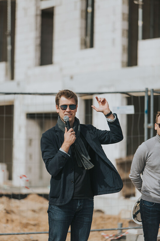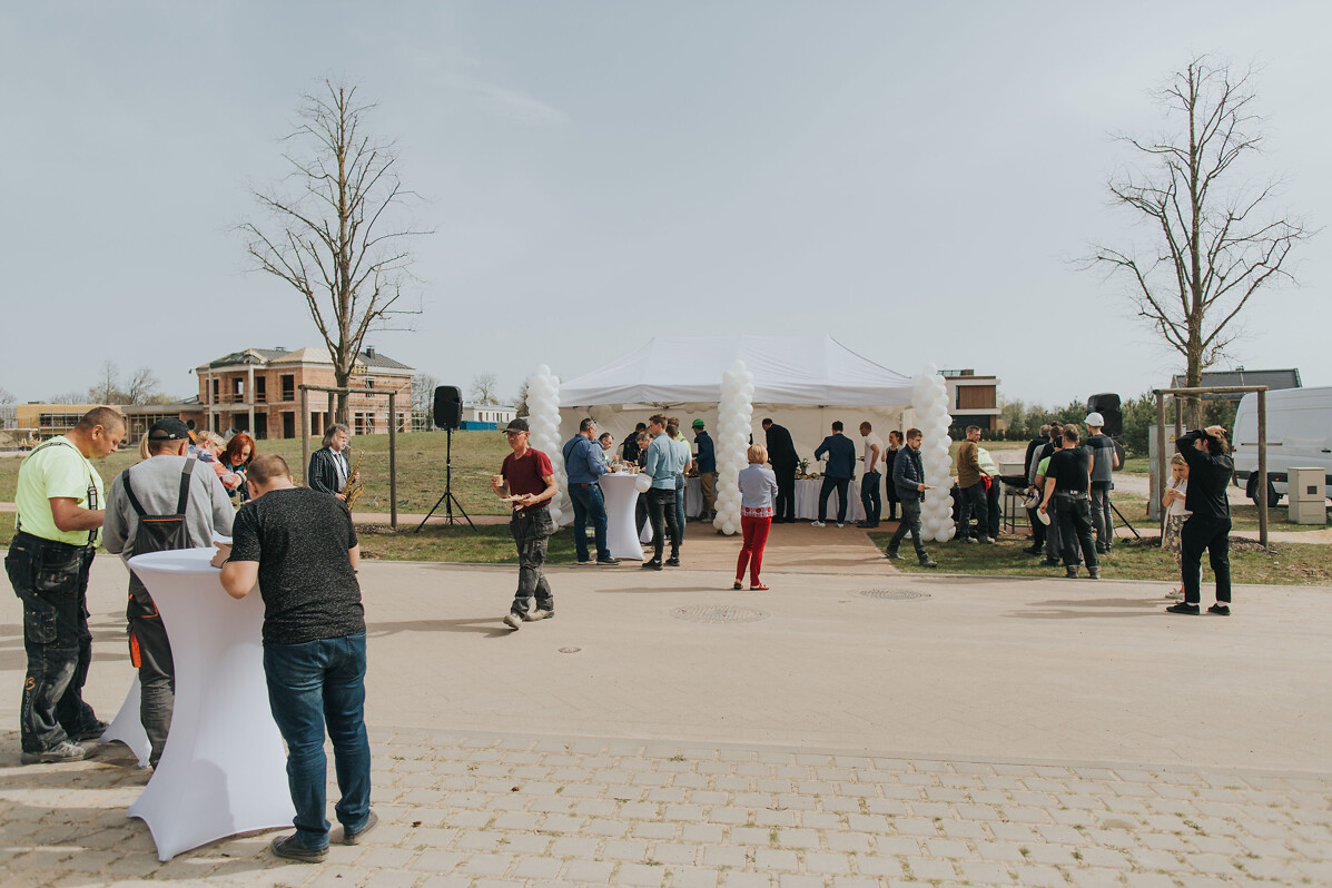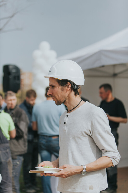 “Большое спасибо архитекторам, инспекторам строительного надзора, всей команде “Domuss“ и, конечно же, строителям, поскольку только наша совместная работа позволяет нам сегодня отмечать Праздник стропил. Надеюсь, что успешно продолжим начатое и сможем завершить проект до концаэтого года“