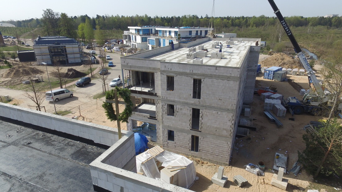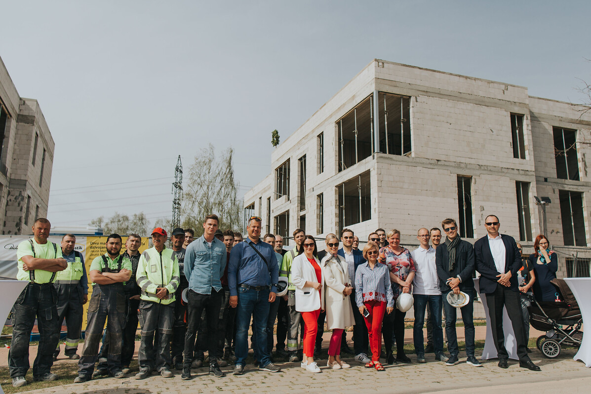отмечен Праздник стропил у двух новых квартирных домов: на улице Яуна Межапарка 32 и 34 (Jaunā Mežaparka ielā 32 и34).Таким образом было отпраздновано завершение сложных