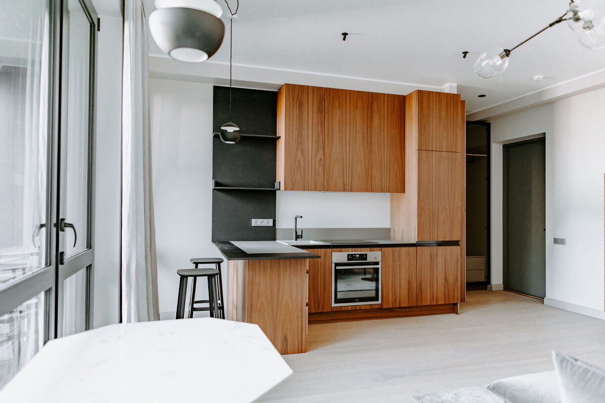 Квартиры в проекте Parker’s отличает функциональный дизайн, панорамные окна и трехметровые потолки. В квартирах пол покрыт трехслойным паркетом из натурального дерева, двери из шпона из отбеленного дуба, покрашенные стены сделаны из двойного гипсокартона. В квартирах установлены дизайнерские высокие, вертикальные радиаторы. Кухонная часть выдержана в лаконичных, темно-серых тонах с плиткой с деревянной или мраморной текстурой, а также каменными ваннами. Сантехника от компаний Laufen и Duravit.