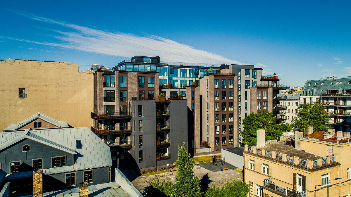 Элегантный ансамбль пяти зданий - новый проект Parker’s - расположен в Тихом центре Риги, в районе посольств, поблизости с улицами Валдемара и Мелнгайля. На стороне улицы расположен комплекс из четырех реставрированных деревянных офисных зданий, в тихом внутреннем дворе окружающий семиэтажную жилую новостройку с почти 70 квартирами. Визуально новый проект выделяется фасадами черных и серых оттенков, а также великолепным панорамным видом на город, открывающимся из окон здания.  Проект месяца на City24.lv - Parker’s. Ансамбль пяти зданий для бизнеса и проживания в центре Риги - Новости недвижимости - City24.lv портал недвижимостиВ проекте 68 квартир с 2-5 комнатами площадью от 32 до 150 кв.м., с полной, эксклюзивной внутренней отделкой особого дизайна, с балконами и просторными террасами на верхних этажах. Архитекторы создали ансамбль зданий, успешно объединив наследие деревянной архитектуры ЮНЕСКО с современными технологиями.