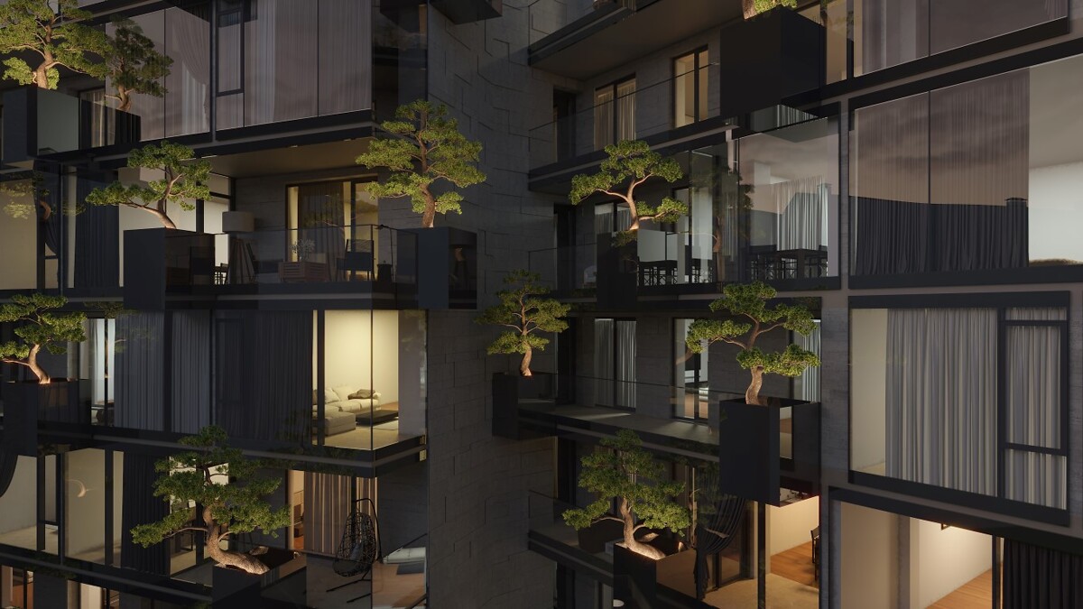 Квартиры фасадной части исторического здания имеют вид на красивейшее здание Стокгольмской Школы Экономики и вдоль улицы Альберта, окна квартир во дворе выходят на растущие огромные деревья. Концепция HOFT доводит до Абсолюта уникальность видов из окон. Изящные силуэты деревьев бонсай украсят лаконичную современную архитектуру современного здания, отражаясь в холодном блеске стекла своими причудливо изогнутыми ветвями и вечнозеленой кроной.