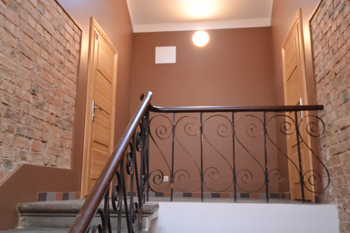 В процессе реставрации здания были окрашены стены и потолки, заменены окна, отреставрированы наружные стены и каркас, а также выполнены другие внутренние и наружные работы. Из преимуществ проекта стоит упомянуть современный и уютный внутренний двор, доступную для жильцов парковку, а также озелененную территорию, огороженную забором. В доме небольшое число квартир, для удобства жильцов имеется подвал.