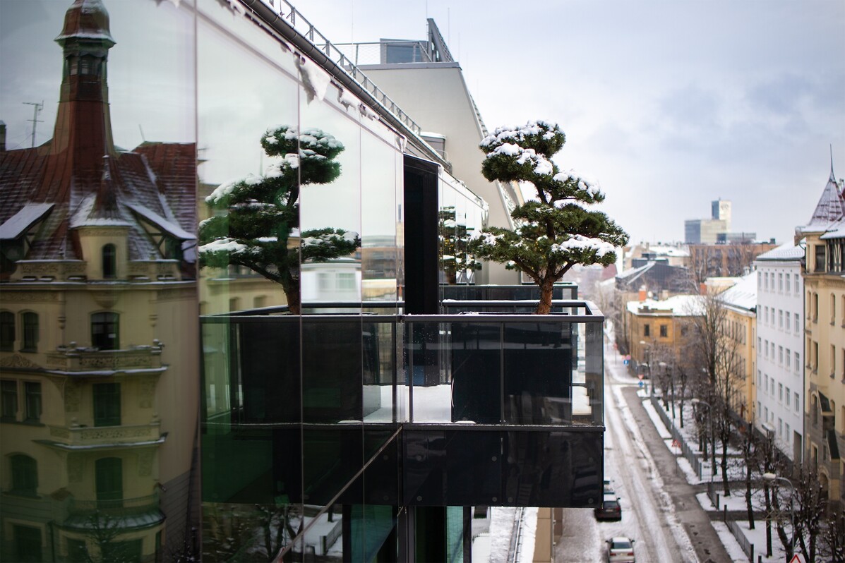 бонсаи в архитектуру дома, применено в Балтии впервые. Словно зависшие
