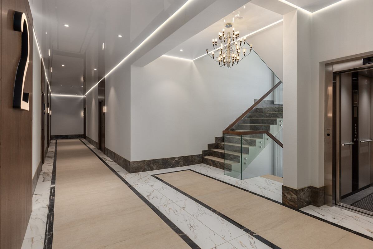 Современная архитектура, вентилируемый фасад здания, со вкусом созданная дизайнерская лестница, и качественные материалы – ценности этого проекта, с которыми стоит познакомиться уже сегодня.