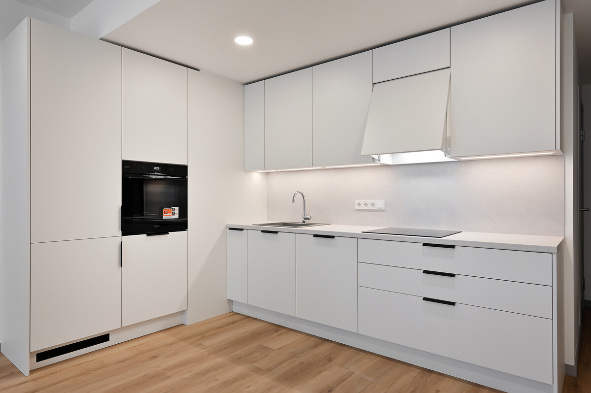 Помимо затрат на покупку квартиры, финансовые ресурсы также требуются для её оснащения мебелью и бытовой техникой. Это оборудование уже включено в стоимость. Оборудованная квартира поможет сэкономить до 15 000 евро, которые в противном случае пришлось бы вложить в покупку встроенной мебели и бытовой техники. Кроме того, оснащая сразу несколько квартир, застройщик может предложить более качественные материалы и дизайнерские решения, которые были бы дороже при индивидуальных заказах.