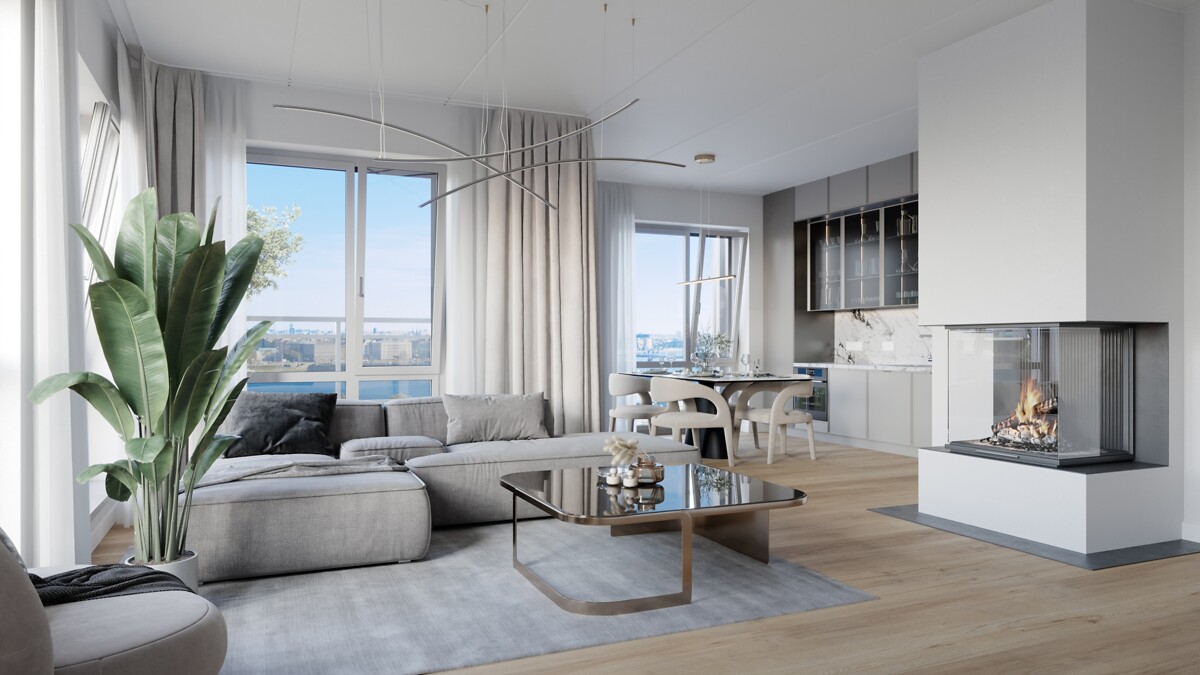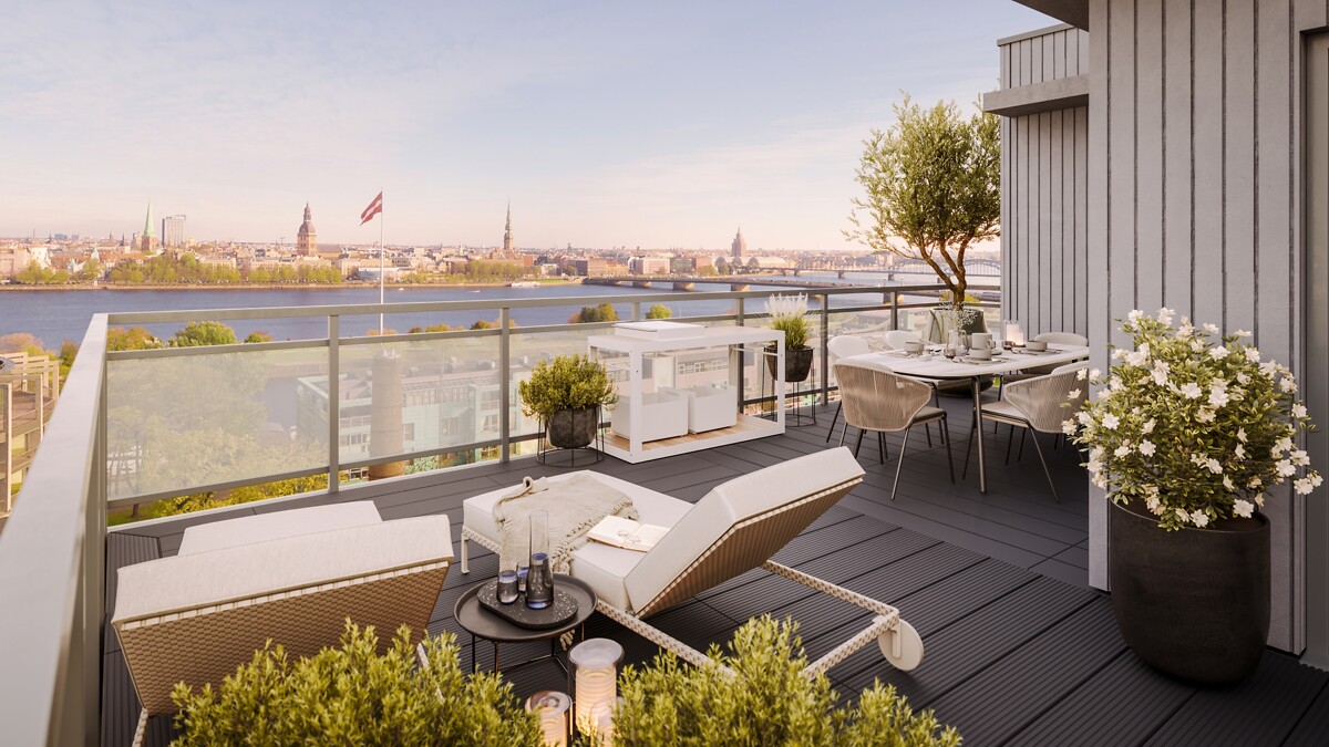 Помимо этого, жильцы получат доступ к отдельному помещению для размещения детских колясок и велосипедов, детской игровой площадке и благоустроенному променаду для отдыха и прогулок вдоль берега Даугавы. Все это создаст комфортную среду с видом на воду для наслаждения природой и незабываемыми закатами.