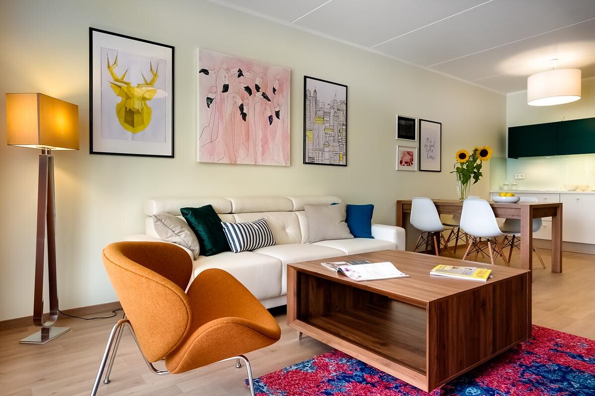 Каждый из домов насчитывает 40 квартир площадью от 49 до 65 квадратных метров, выставляемых на продажу с полной внутренней отделкой. Во дворе предусмотрены наземные автостоянки, но выбрать одно из парковочных мест можно и в подземной части здания. В ходе разработки проекта было подумано и о маленьких будущих жильцах, поэтому на благоустроенной территории комплекса разместится просторная детская игровая площадка.