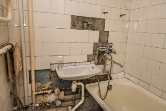 В данной квартире, а также этажом ниже и этажом выше, был заменён канализационный стояк, чтобы в будущем, в случае ремонта у соседей, не было необходимости затрагивать свежий ремонт у нашего заказчика.