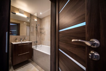 Планирование пространства и благоустройство ванной комнаты было выполнено совместно с нашим постоянным партнером, дизайнером — Оксаной Никитенко. Она помогала подобрать плитку и сантехнику. В свою очередь о технических нюансах позаботилась наша команда из Baltic Būves Centrs.