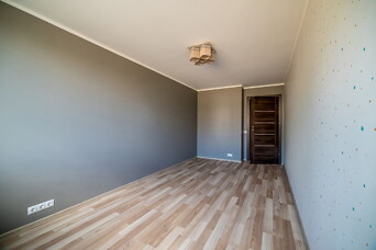 Стены и потолок были отшпатлеваны и покрашены водоэмульсионной краской теплого песочного цвета. Возможно вы заметили из описания прошлых проектов, что покраска сейчас пользуется большей популярностью. Это действительно так. Обои требуют более тщательного выбора (приятный рисунок бывает не так-то просто найти!), покупки клея, подгонки мотивов при оклейке. В свою очередь краску смешивают в любом строительном магазине, по каталогу из тысяч цветов. Да и освежить краску намного легче, чем переклеить обои.