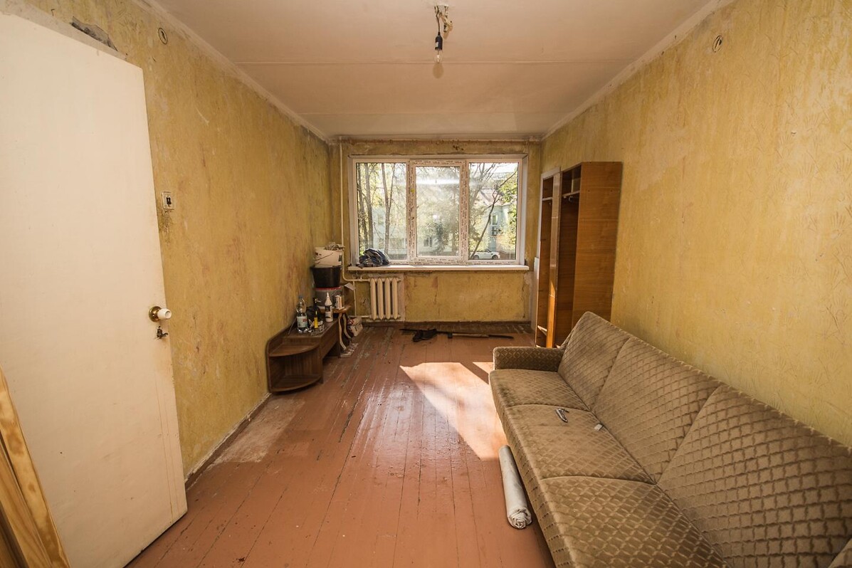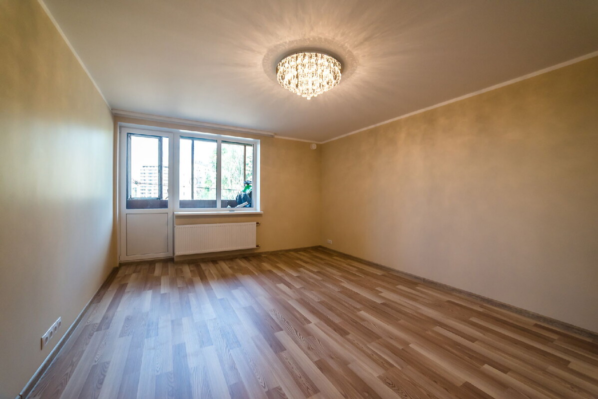 Стены и потолки были отшпатлеваны и покрашены водоэмульсионной краской.