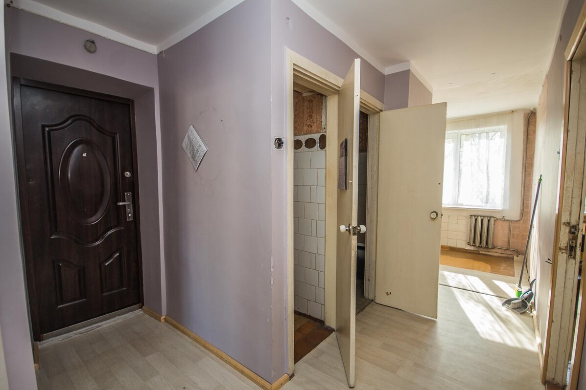 Для реализации задуманного, было принято решение снести все перегородки кроме несущих стен, т.к. новые стены из гипсокартона позволяют осуществить идеальное выравнивание при минимальном расходе времени и средств, а также скрывают электрику и трубы. После демонтажа стен, был снят и старый деревянный пол до бетонных плит перекрытия.