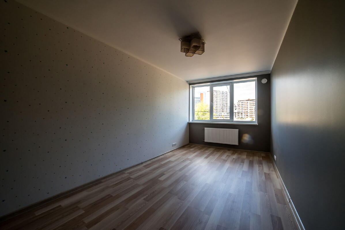 Перегородки были сделаны по типу Knauf С 112. Это одинарный металлический каркас (75 мм), с обеих сторон обшитый 2 слоями Knauf листов. Для звукоизоляции в перегородку установлены листы минеральной ваты толщиной 70 мм. За счёт новых перегородок, спальня, имевшая раньше вытянутую форму, была разделена на два помещения — спальню и гардеробную, каждая с отдельным входом.
