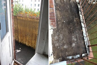 Мы выровняли и демонтировали старое асфальтовое покрытие, сделали полное выравнивание пола и уложили плитку из бетонной массы. При выборе плитки для таких целей, очень важно, чтобы она имела устойчивость к большим перепадам температур, иначе, в скором времени она потрескается! Металлические перила были тщательно отшлифованы и покрашены.